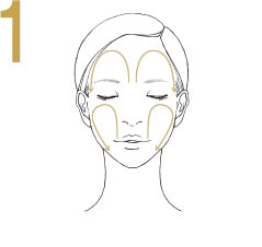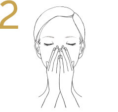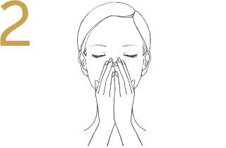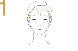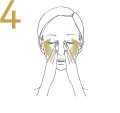 With 4 fingers below each brow,exhale deeply.