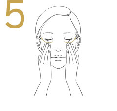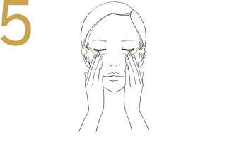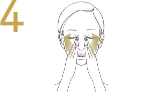 With 4 fingers below each eye,exhale deeply.