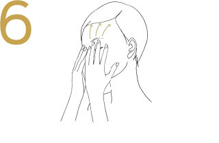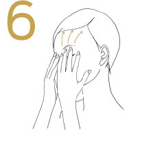 Inhale deeply,gliding them over your forehead and toward the hairline.
